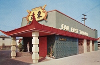 Description:North Hollywood, CA. Far East Terrace (4223 Lankershim Blvd.) exterior. Cinder block building with red "pagoda" front porch.