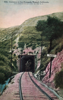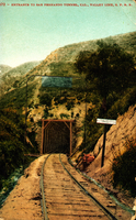 Description:Santa Clarita Valley, CA. "Entrance to San Fernando Tunnel, California. San Joaquin Valley Line, So. Pac. R. R." Steam locomotive in tunnel. Postmarked Sept. 30, 1913, Lordsburg, New Mexico.