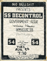| VR/PRF/17 | Flyer for No Bullshit’s show with SS Decontrol, Government Issue, Willful Neglect, Stäläg 13, and Patriots | paper flyer | Punk Rock flyer |
