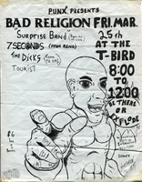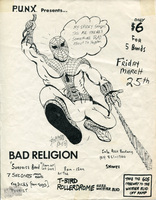 | VR/PRF/03 | Flyer for P.U.N.X’s Bad Religion, "Surprise Band,” 7 Seconds, The Dicks, and Tourist | paper flyer | Punk Rock flyer |