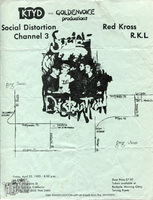 | VR/PRF/42 | Flyer for Social Distortion, Channel 3, Red Kross, and R.K.L | paper flyer | Punk Rock flyer |