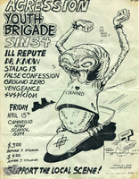 | VR/PRF/02 | Flyer for punk rock event with Agression, Youth Brigade, Sin 34, Ill Repute, Dr. Know, Stäläg 13, False Confession, Ground Zero, Vengeance, Suspicion | paper flyer | Punk Rock flyer |