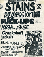 | VR/PRF/40 | Flyer for Panther Production’s show with Stains, Agression, Fuck+Ups, Verbal Abuse, and Crankshaft Jackals | paper flyer | Punk Rock flyer |