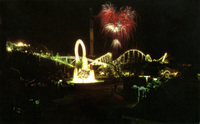 Description:Valencia, CA. Magic Mountain. Display of fireworks above the Great American Revolution roller coaster.