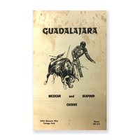 Description:Menu from Guadalajara, a Mexican and seafood cuisine restaurant located at 21015 Sherman Way, Canoga Park.