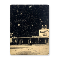 Description:Menu from Jimbill’s Coffee Shop, a family restaurant located at 12192 San Fernando Rd., Sylmar (not on menu). The restaurant was there until at least 1969. The menu depicts the coffee shop beneath a starry sky, and this building is still in operation today under the name Olympic Coffee Shop as of 2015. It contains five little typewritten or printed inserts with specials held with paperclips. [show more]