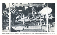 Description:Woodland Hills, CA. NeLed Rancho Garden Patio Furniture (22151 Ventura Blvd.), black and white image of lawn ornament and patio furniture outdoor showroom. Signed Ed and Nell--the owners? Postmarked Jan. 15, 1956, Tarzana.
