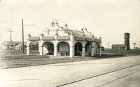 Description:Van Nuys, CA. Pacific Electric streetcar depot on Van Nuys Blvd.
