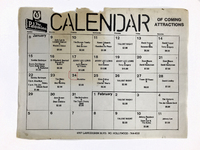 Description:Calendar of shows scheduled at the Palomino from January 8 to February 11, 1984.