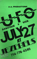 | VR/PRF/61 | P.A Productions’ show with UFO, Sabotage and Vice at Jezebels | paper flyer | Punk Rock poster |