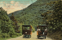 Description:Hollywood (Studio City), CA. Advertising postcard for Pacific Electric "trackless trolley," Laurel Canyon. "First in America." Postmarked April 20, 1912, Los Angeles.