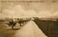 Description:San Fernando, CA. "Pacific Packing Co." An entrepreneurial citrus-packing company that expanded to Covina in 1912. In 1918 they purchased a musselcanning plant in Long Beach. Postmarked August 8, 1912.