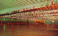 Description:Van Nuys, CA. Rainbow Dancing and Skating (14318 Calvert St.), interior of a dancefloor with a band on stage. AKA the Rainbow Roller Rink. Ritchie Valens performed "La Bamba" on this stage. Iceland Ice Skating Rink today.