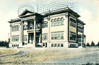 Description:San Fernando, CA. San Fernando Union High School, 1907. Postmarked Sept. 7, 1910, San Fernando.