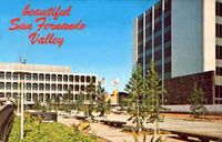 Description:Van Nuys, CA. "Beautiful San Fernando Valley." San Fernando Valley Administration Center (Van Nuys Civic Center today), with Los Angeles Public Library sign visible. This branch library opened in 1964. Postmarked Nov. 8, 1973.
