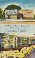 Description:Studio City, CA. Saddle and Sirloin Restaurant (12449 Ventura Blvd.), exterior pic of building with neon signs; interior of bar area. Postmarked April 7, 1949, Palm Springs--from the Palm Springs location).