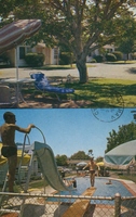 Description:Van Nuys, CA. San Fernando Valley Motel (7533 Sepulveda Blvd.), two photos: chaise lounge under shade tree; guests using pool slide and diving board. Postmarked July 26, 1961, Van Nuys.