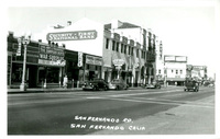 Description:San Fernando Rd., San Fernando, CA. Black and white image of a street scene, showing Security First National Bank and other businesses.