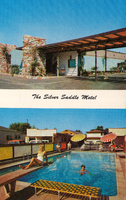 Description:North Hollywood, CA. Silver Saddle Motel (6325 Lankershim Blvd.), motel exterior with "Googie architecture"; pool area with diving board.