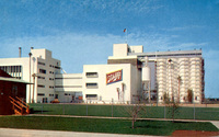 Description:Van Nuys, CA. Schlitz Brewery (7521 Woodman Ave.?), a frontal street view of the brewery. Dated on back March 4, 1964.