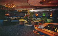 Description:Van Nuys, CA. Skytrails Restaurant interior with fascinating light fixtures and "organ bar."