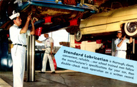 Description:Van Nuys, CA. Standard Stations, Inc., No. 6532 (15851 Victory Blvd.), uniformed workers performing oil changes on early 60s cars. Back side informs the owner of a '62 Falcon of his need for scheduled maintenance. Postmarked Apr. 4, 1963, Reseda. "Pray for Peace." [show more]