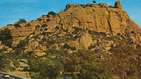 Description:Chatsworth, CA. Stoney Point (Los Angeles Historic Monument No. 132), photographed from the opposite side of Topanga Canyon Blvd. Note graffiti on the stones.