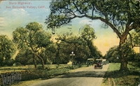 Description:San Fernando Valley, CA. "State highway, San Fernando Valley" with 1920s cars. Postmarked Dec. 6, 1931, Buffalo, New York.