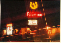 Description:North Hollywood, CA. The Palomino (6907 Lankershim Blvd.), exterior with neon signs advertising the restaurant.