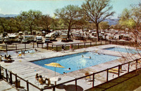 Description:Travel Village RV Campground, (27946 Henry Mayo Rd., Valencia). “30 minutes from Los Angeles.” Campers enjoying the pool.