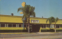 Description: Canoga Park, CA. Country Squire Motel (7631 Topanga Canyon Blvd.), two-pack with VR/PC/HM/78. Street view of motel with freestanding sign and attached Pappy's Restaurant. [show more]