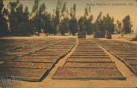 Description:Lankershim, CA. "Drying Peaches, Lankershim, Cal." (North Hollywood today). Wooden racks of peaches drying in the sun. Postmarked July 8, 191?, Lankershim.
