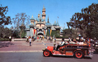 Description:Anaheim, CA. Disneyland (1313 Disneyland Dr.). A "horseless carriage" (vintage fire truck) on Main Street USA in front of Sleeping Beauty's Castle. Postmarked March 1976.